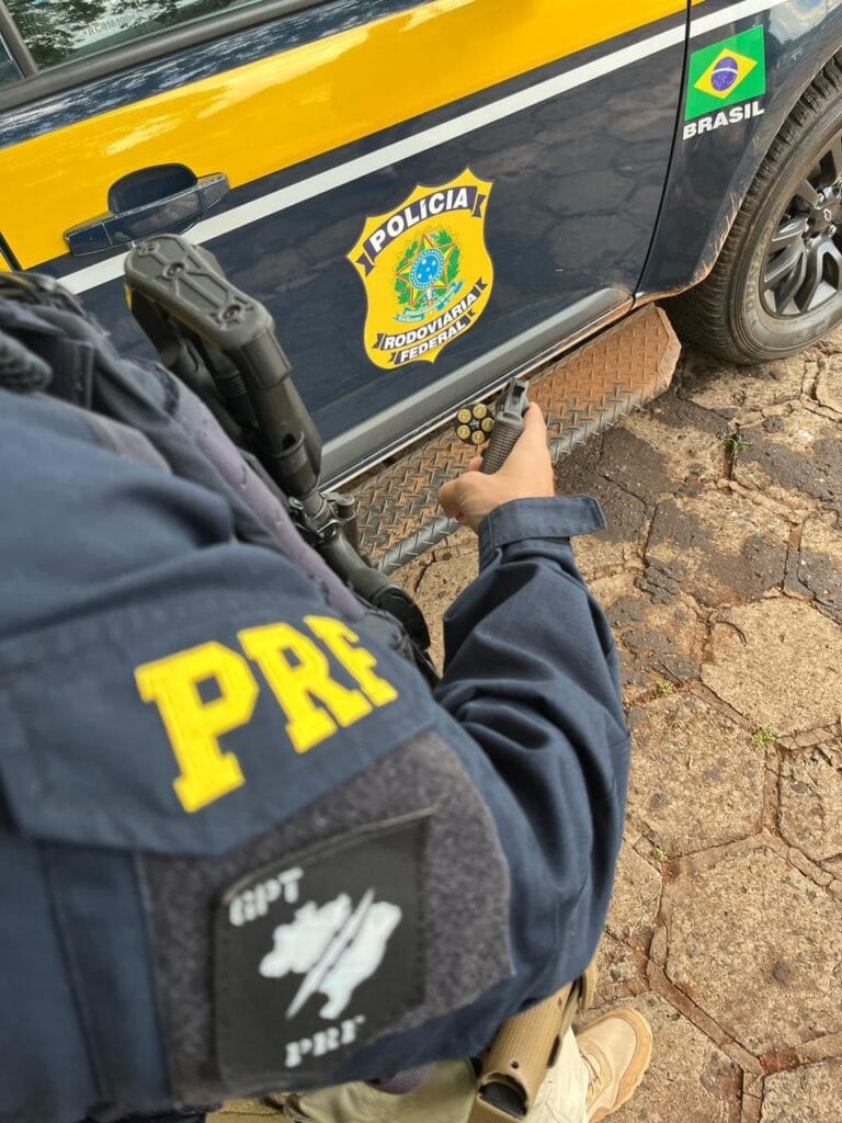 Arma estava escondida sob o banco do motorista, coberta por uma toalha Na tarde desta terça-feira (18), a Polícia Rodoviária