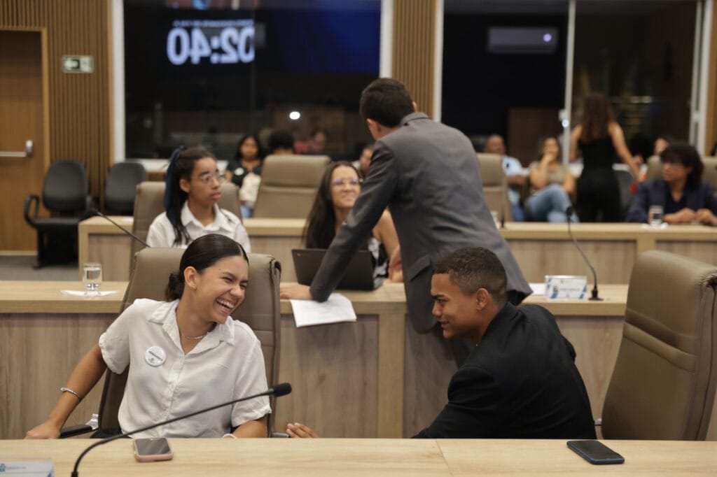 Na sequência, os jovens parlamentares participaram da primeira sessão ordinária simulada, com apresentação e debate de propostas próprias. Os temas variaram de saúde e inclusão social até criação de datas comemorativas e incentivo à tecnologia. Também foram definidas as lideranças partidárias, seguindo os ritos de uma sessão real.
