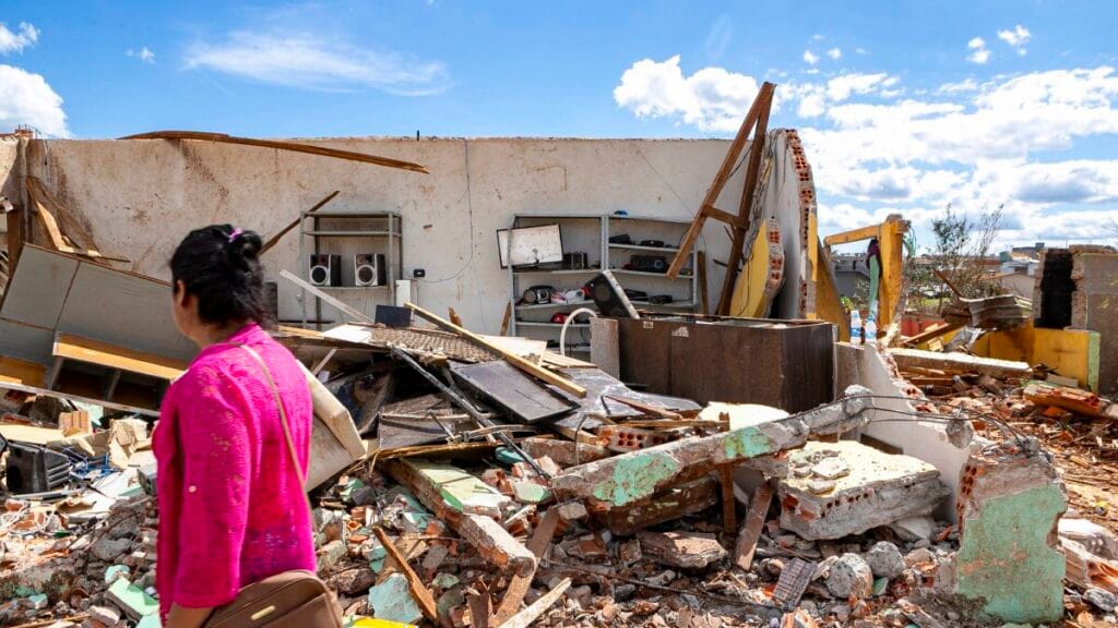 Um violento tornado atingiu a cidade de Rio Bonito do Iguaçu (PR) na noite de sexta-feira, resultando em pelo menos seis óbitos, centenas de feridos e uma devastação generalizada: estimativas preliminares apontam que cerca de 90% da malha urbana foi afetada — residências, comércios e silos agrícolas registraram danos severos.